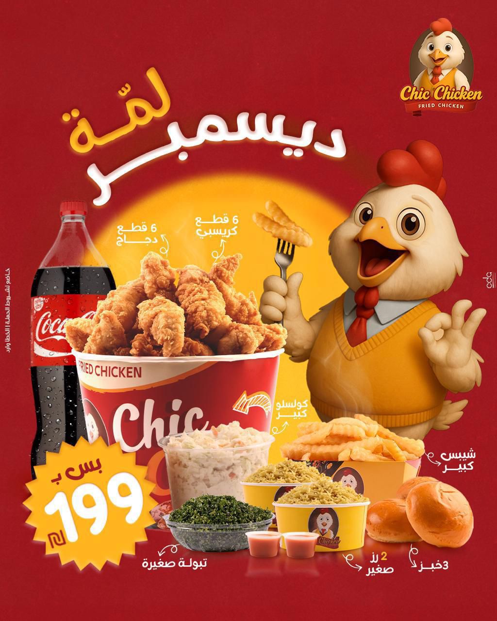 6 كرسبي | 6 قطع دجاج 2 رز صغير | كولسلو كبير شيبس كبير | مشروب كبير تبولة صغير | 3 خبز